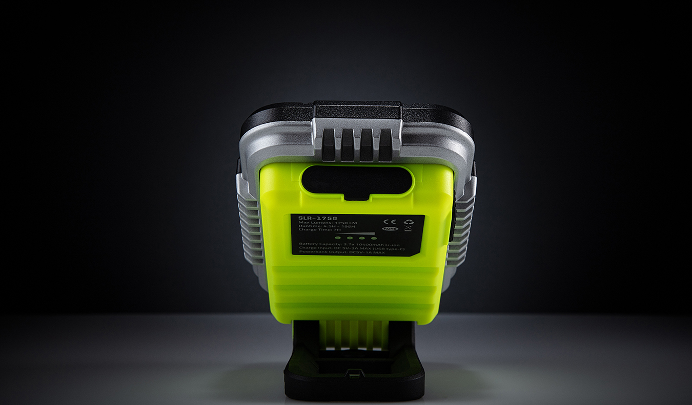 La SLR-1750 es una luz de obra compacta y recargable por USB, con una salida ultra brillante de 1750 lúmenes. Su soporte plegable de 180° incluye un práctico gancho tipo mosquetón y montaje para trípode, junto con potentes imanes integrados.
