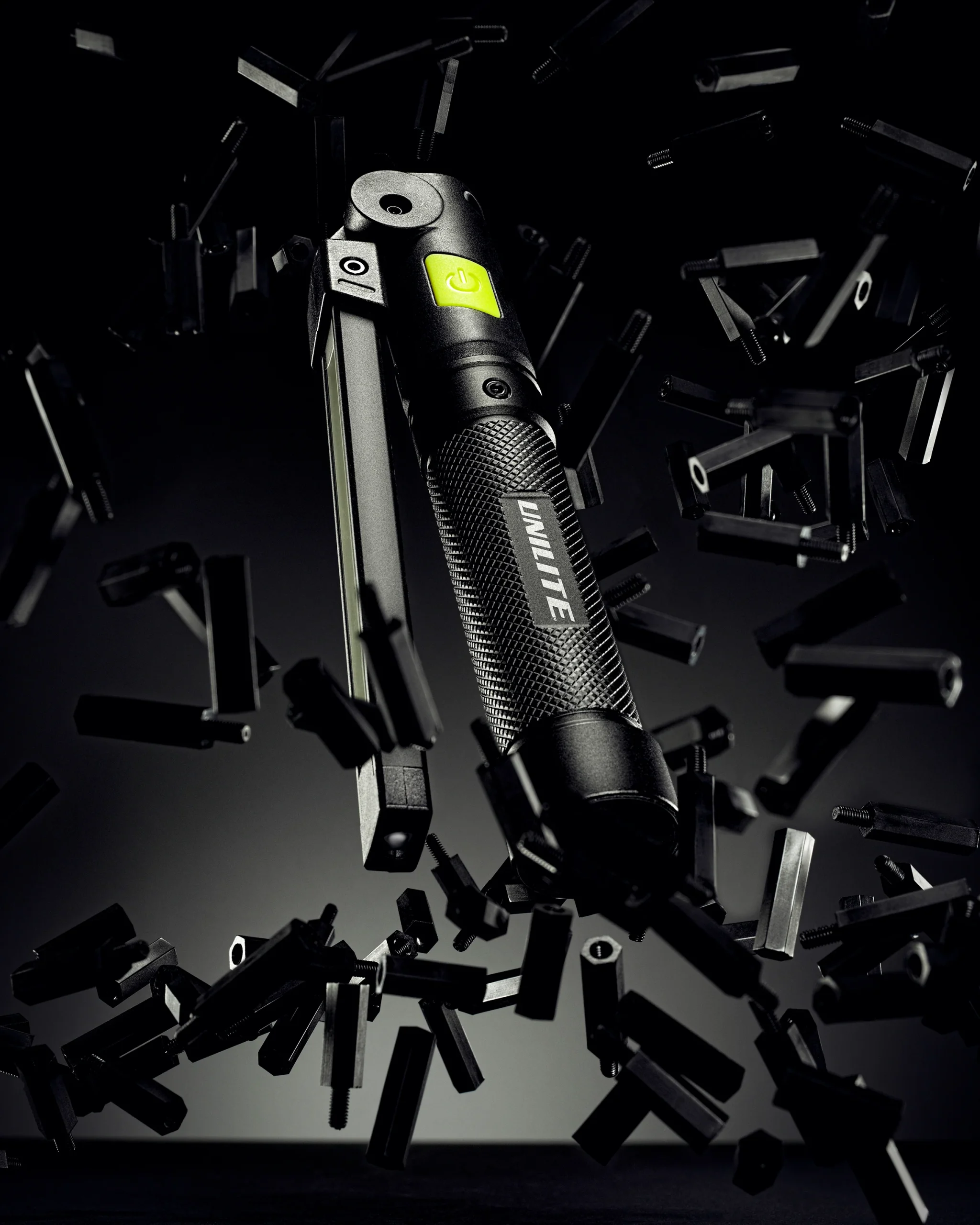 De diseño ultracompacto, tiene una construcción súper resistente de aluminio y nylon con certificación IK07. Incluye un potente imán en la base y prácticos indicadores de nivel de batería. Su batería recargable de litio se puede cargar fácilmente mediante USB-C en 4 horas.